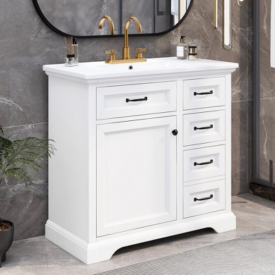The cabinet and drawer combination perfectly stores various bathroom essentials, keeping necessities away from water stains and dust.