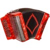 The stylish Alacran Model AL3112 is a 3-row diatonic 31-button style accordion with exceptional high-quality sound. The large Italian-style buttons are smooth, noise-free that feel and play like a high-end Italian accordion. Designed by Pierluca Polverini, the Alacran has many features not found on accordions in its price range, like soft smooth airtight cloth bellows unlike the paper bellows found on other brands. It is perfect for Norteno, Tex Mex and Conjunto styles of music. The 12 bass buttons are used to control the intake and release of air. It has an adjustable bass side strap for playing comfort, and Italian-style bellow straps with tuck-away snaps. Attractive diamond-design bellows. Includes a fitted hardshell case with straps. Available colors include Black Gloss, Red Pearl. Please select preferred key and color in the drop down menu, Sol (GCF) and Fa (F/Bb/Eb).