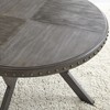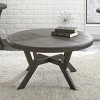 Mixed media and geometric designs combine in a soft gray palette for the Alamo Occasional tables. The Alamo Cocktail Table is constructed of paulownia veneers in a gray finish with a gray metal base with black hand brush accents. The table features a round parquet veneer top with a decorative metal rim accented by the unique geometric metal base. Also available for purchase separately is the matching end table. Your purchase includes one cocktail table.