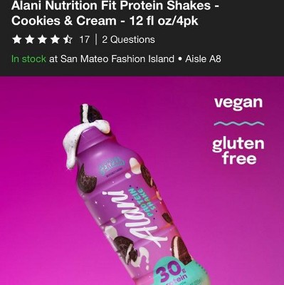 Alani Nutrition Fit Protein Shakes Cookies & Cream Non-Caffeinated - 12 fl oz/4pk