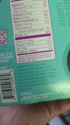 water, milk protein concentrate, calcium caseinate, cream, soluble corn fiber, sugar, cocoa (processed with alkali), cellulose gel, sea salt, natural and artificial flavor, dipotassium phosphate, cellulose gum, sucralose, sodium hexametaphosphate, acesulfame potassium' '