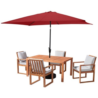 The table umbrella's durable polyester fabric and wind-resistant canopy handle average weather, letting you enjoy your backyard in the summer sun or light rain