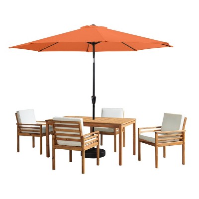 Alaterre Furniture 8pc Outdoor Patio Dining Set, Okemo Table with 10' Auto Tilt Umbrella Terre Cotta