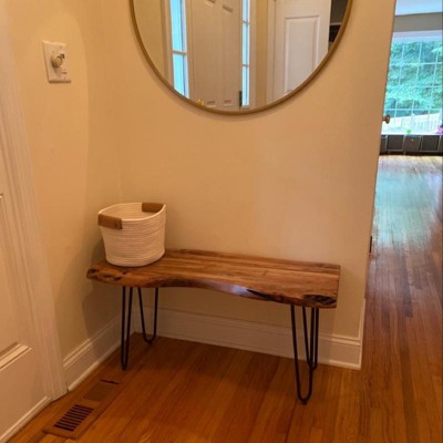 Alaterre Furniture 36" Hairpin Live Edge Bench: Industrial Mid-Century Modern, Metal & Acacia, 300 lb Capacity