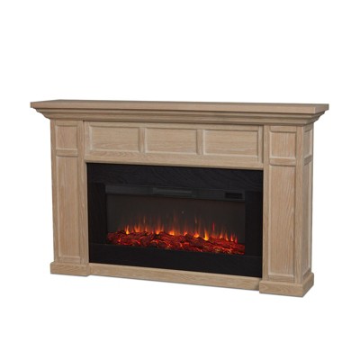 Create a welcoming, cheerful home with the fresh, modern farmhouse style of the Alcott landscape electric fireplace. Part of the Real Flame® VividFlame Landscape Series, this widescreen electric firebox mimics the look of a real, flickering fire, but does not require a chimney or vents and conveniently plugs into a standard outlet. This free-standing, extra-long indoor fireplace has a mantel with a real wood finish and features six flame colors, five flame brightness levels, adjustable thermostat, timer function and automatic safety shut off. The electric fireplace insert provides supplemental heat for rooms up to 1,000 sq ft or the heater can be turned off so you can enjoy the comforting ambiance of a glowing fireplace year-round. Mantel, firebox with log set, hardware and remote control are included. At Real Flame Company, we are committed to providing beautifully designed, safe, high-quality indoor electric fireplaces, outdoor gas fire pits and fire tables, and outdoor furniture.