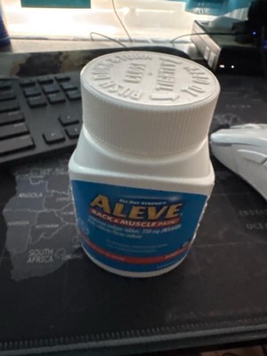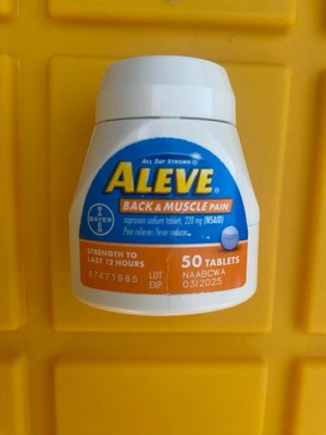 Aleve Back & Muscle Pain Reliever & Fever Reducer naproxen sodium Tablets provide targeted muscle and back pain relief. Each naproxen sodium 220 mg tablet has the strength to deliver up to 12 hours of continuous, effective back and muscle pain relief directly to the site of your pain. Aleve is formulated to reduce fever while managing minor pain from a backache and other minor muscle aches and pains. Available in a small, round tablet form, these back and muscle pain relief pills are easy to swallow. Pain happens. Aleve it. Use as directed for minor aches and pains. *Among OTC Pain Reliever brands** **IQVIA, Arthritic Pain Relief Products, 12 months ending Q4 2022 †Based on clinical study vs. Hydrocodone + Acetaminophen during the first 4 hours after initial dosing