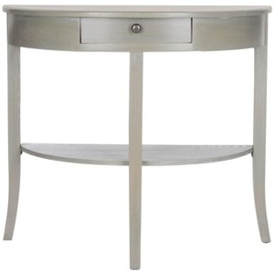 With clean lines inspired by Spanish traditional furniture, the Alex Console adapts to a myriad decorating themes. Finely crafted of elm in an ash grey finish, Alex provides storage and style with its lower shelf and single drawer. Designers love its demilune silhouette.
