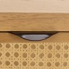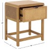 Introducing the Alexander 1 Drawer Nightstand in a charming natural color, where simplicity meets functionality. This nightstand is expertly crafted from MDF, rubber wood, and rattan, offering a blend of style and durability. Its sleek design perfectly complements any bedroom decor, adding a touch of warmth and elegance.