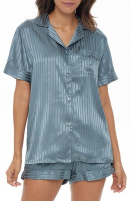 This women's satin pajama set from Alexander Del Rossa would be a great addition to any wardrobe. The short sleeved pajama top features a button down front, two front pockets and a collar with contrasting trim. The bottoms feature an elastic waist for a comfortable fit. If you're not completely satisfied with this pajama set returns are accepted.