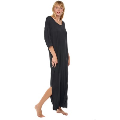 ADR Women's Soft Knit Nightgown, Full Length Long Henley Night Shirt Pajama Top with Pockets Burgundy /black Large