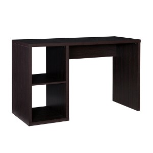 Designed to maximize storage, this desk is the perfect answer to organizing clutter in your home office or any other room. Whether you're penning a quick to do list or working from home, this desk always offers a stylish spot. The generously sized worktop can easily fit your full-sized computer workstation, keyboard, mouse, and other supporting items. Two cubbies pair perfectly with our colorful fabric storage bins, and are great for storing books, binders, notepads and more. With clean lines and a rich brown espresso color, this desk will integrate effortlessly into any decor.