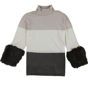 - STYLISH DETAILS: This pullover sweater features a color block pattern and faux-fur cuffs, adding a touch of luxury. The turtleneck collar provides warmth and style.
