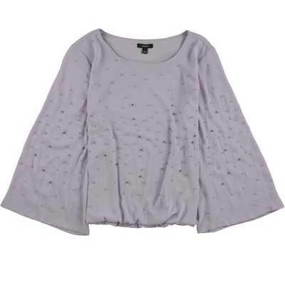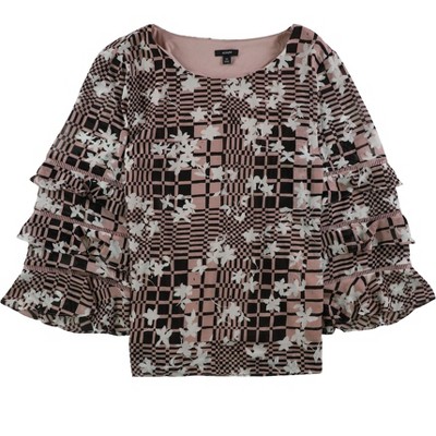 Alfani Womens Pleated Bell Sleeve Floral Pullover Blouse