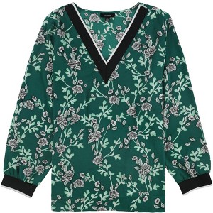 Alfani Womens Ribbed Trim Floral Pullover Blouse