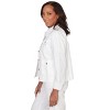 This lightweight jacket features a crisp collared neckline, full button front, and roomy patch pockets for easy styling. Long sleeves and a straight hemline create a polished layer perfect for cool spring days.
