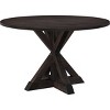 An up-to-date take on the pedestal table, this round dining table delivers cool modern farmhouse design right to your dining room. The strong angles of the table base intermingle to create a strong, stable look and feel. The simple round tabletop fits well in petite kitchen and dining room areas, or even a sunroom. Showing off natural wood grains, the rustic brown wood finish makes a great base for mismatched vintage plates and floral linens, or a sleek set of metallic china with a striped fabric runner. Accommodates up to 4 dining chairs for your guests.