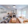 Classic with a touch of retro inspiration, the design of this one-light flush mount ceiling light is versatile for placement in kitchens, entryways, and living spaces. A sleek brushed nickel finish steel canopy nestles a frosted acrylic diffuser filtering dimmable LEDs that offer options for white color levels create a total package.