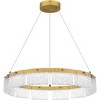 Create a cool and contemporary look with Alice, part of the popular Platinum by Quoizel collection. An integrated LED light source shines brilliantly through a clear hammered acrylic shade, adding an understated sense of luxury. Finished in brushed gold or matte black, Alice pendant lights are sure to make a statement over any kitchen island, table, or in a living room space.
