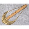 Make a bold statement with the Alilang Antique Gold Tone Bib Necklace, a striking piece that blends cultural elegance with modern style. Featuring three curved crescent layers adorned with intricate geometric engravings, this necklace exudes an earthy, bohemian charm. The antique gold-tone finish adds a vintage appeal, making it a perfect accessory for festival outfits, casual ensembles, or artistic statement looks.