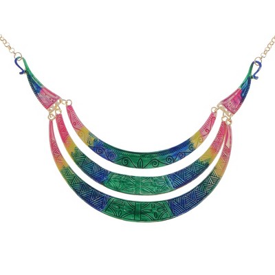 - Layered Crescent Bib Structure: Three curved layers create a bold, structured look that enhances any neckline.