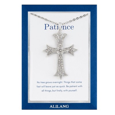 Alilang Gunmetal Crystal Cross Fashion Necklace with Message Card Envelope Jewelry Gift - Patience
