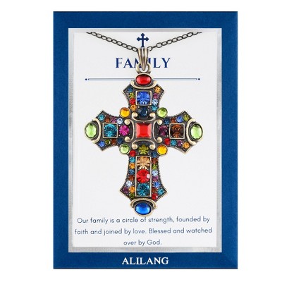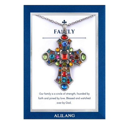 Alilang Stained Glass Rhinestone Patonce Cross Fashion Necklace with Message Card Envelope Jewelry Gift - Family
