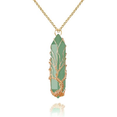 Alilang Natural Stone Chain Healing Crystal Raw Quartz Handmade Gemstone Layered Necklace for Women, Aventurine