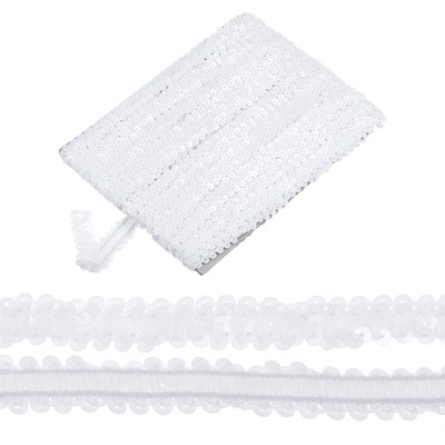 Sequin Trim, 0.5 Inch Flat Glitter Sequin Ribbon, Sparkle Metallic Sequin Strip, Bling Fabric DIY Sewing Embellishment, 27 Yards, White