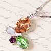 Elevate your ensemble with this enchanting Abstract Ring Dangle Flutter Colorful Pastel Crystal Pendant Necklace. Crafted by skilled artisans, it features a mesmerizing abstract butterfly pendant adorned with fine Synthetic Topaz, light rose pink, and Synthetic Peridot green crystal rhinestones, suspended elegantly from a polished silver-tone ring. This handcrafted piece is flawlessly cut and polished, ensuring a radiant and captivating sparkle, making it a timeless gift for that special someone.