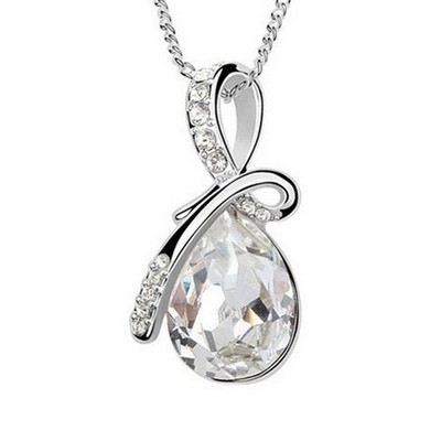 - Exquisite Curved Teardrop Crystal Pendant: This stunning necklace features a gracefully curved teardrop crystal pendant that sparkles beautifully. The elegant design adds a touch of timeless sophistication, making it a standout piece in your jewelry collection.
