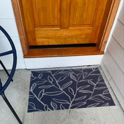 Alisa Galitsyna Navy Blue Patterned Leaves Welcome Mat - Society6