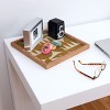 - The Deny trays are 100% sustainable, eco-friendly flat grain amber bamboo wood frame with satin finished printed tray bottom
