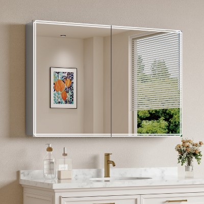Alita 48'' x 32'' Medicine Cabinet with Lights and Mirrors, Modern Bathroom Cabinet with 3-Mode Light, Anti-Fog, Dimmable, Outlet, Silver