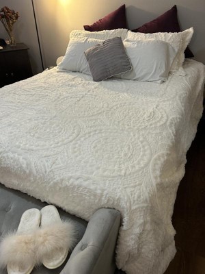 [This review was collected as part of a promotion.] This set is really beautiful, super soft, and very warm. I live in a cold area and this is perfect for the winter. The ivory color and the design are really beautiful and neutral enough to work with almost any decor. The zippers are hidden really well so that you don’t see them, which is nice (I don’t have shams at the moment, so I used regular bed pillows to see how they would look). Really pleased with this set!