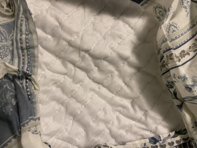 The Aliza Reversible Quilt Set by Levtex Home is inspired by artistic folk art. Offered in blue, navy, taupe and cream, this design will immediately transform your bedroom. This reversible quilt features an array of florals, medallions and paisleys in various tones of blue and cream on the front, reversing to a mini blue medallion on a cream gorund. on the back. The Quilt and Sham have a cotton front and back, filled with a cotton-rich filler, and are machine washable. Enjoy this for years to come!