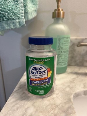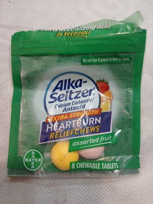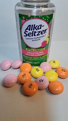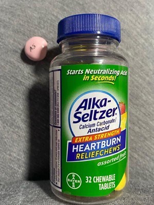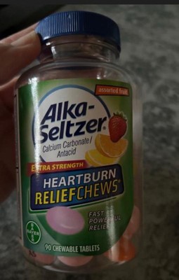 Hate when heartburn hits at the worst times? Alka-Seltzer Extra Strength Antacid ReliefChews are your go to for fast on-the-go heartburn relief. Conveniently sized, with Alka-Seltzer Extra Strength Heartburn ReliefChews, acid indigestion relief is always within reach. Non-gritty and non-chalky, these chewable tablets contain the active ingredient Calcium carbonate. To use: Adults and children 12 years old and over: fully chew then swallow 2 to 4 chewable tablets as symptoms occur, or as directed by a doctor. Do not take more than 6 tablets in 24 hours. If pregnant or breast-feeding, inform your doctor that you are using this product.