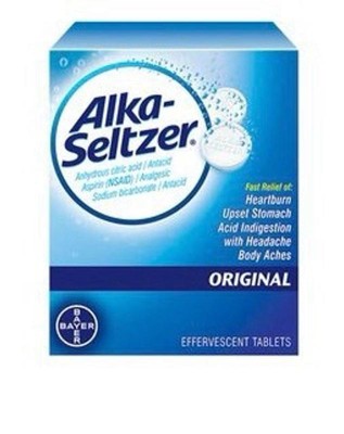 Directions • fully dissolve 2 tablets in 4 ounces of water before taking Adults and children 12 years and over: 2 tablets every 4 hours, or as directed by a doctor; do not exceed 8 tablets in 24 hours Adults 60 years and over: 2 tablets every 4 hours, or as directed by a doctor; do not exceed 4 tablets in 24 hours Children under 12 years: consult a doctor • Fully dissolve two (2) tablets in 4 oz of water before taking. • You do not have to drink any of the residue that may be on the bottom of the glass. The medicine of Alka-Seltzer® is in the water. Take Alka-Seltzer® original flavor at any time - morning, noon, or night - when you need relief from headaches, backaches, body aches or muscle pain.Other information