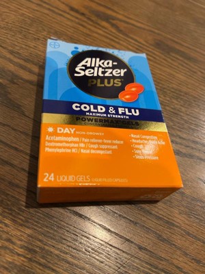 Alka-Seltzer Plus PowerMax Cold & Flu Night Liquid Gels, Nighttime Multi-Symptom Relief for Cough, Congestion, Fever & Aches, 24 Count