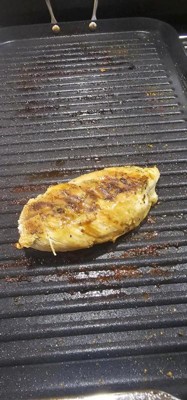 [This review was collected as part of a promotion.] I was really excited to get this. Although it is a griddle with ridges, it’s a really good product for chicken, burger and hot sandwiches. I initially washed with soap and warm water and coated with some oil for first use. Easy to clean and to use. The price seems reasonable for a griddle like this. The heat was distributed nicely on meats.