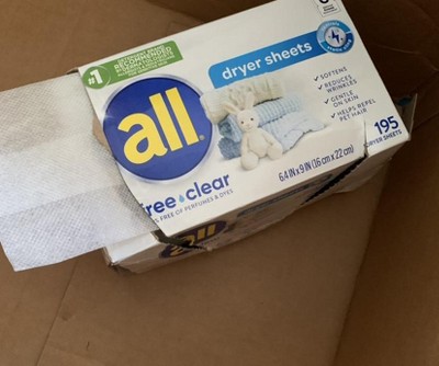Make fabrics softer and more comfortable against your family’s sensitive skin with all Fabric Softener Dryer Sheets for Sensitive Skin. Leave fabrics virtually static-free, more comfortable on sensitive skin, and free of irritating residue with these specially-treated dryer sheets. Made by the #1 detergent brand recommended by dermatologists for sensitive skin, these hypoallergenic dryer sheets are 100% free of dyes and perfumes. Toss in a sheet with a load in your dryer for clothes and bedding that are gentle on the skin. Use with all Free Clear detergent and fabric softener for clean and soft clothes with static cling reduction in the dryer. This box contains 195 dryer sheets.