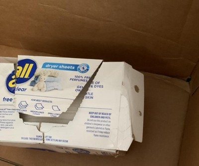 Just to be clear, these are absolutely fragrance free. What I noticed is that they absorb odors from nearby products, so if they are stocked near your average shelf full of snuggle, your box of sheets will smell like snuggle. I’d purchase in store for that reason. I kept mine in the garage for a couple days, and the absorbed scent dissipated. I have used the Bounce free/clear sheets for years, but the All brand was cheaper, so I figured I’d give them a try. Mistake. I’m 3/4 of the way through the box and have debated just tossing them every day. They have the oddest, plasticky material, almost like what reusable grocery bags are made of? I don’t know how to describe it, but it’s not like any other dryer sheet I’ve used. They perform very poorly on static, which is the only reason I still use dryer sheets (drying on low heat and shortening dry time still results in staticky clothing for me). I found these to be a disappointment all around, and I’ll happily shell out the extra $2/box for the Bounce ones that actually work!