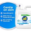 When it comes to laundry care for sensitive skin, all® free clear Liquid Laundry Detergent is the obvious choice. This hypoallergenic laundry detergent is the #1 recommended detergent brand by dermatologists, allergists and pediatricians for sensitive skin & Safer Choice certified. 100% free of perfumes and dyes, all® free clear is hypoallergenic and gentle on sensitive skin. Use with all® free and clear fabric softener and dryer sheets for clean and soft clothes with static cling reduction in the dryer. Directions: REGULAR LOAD: Fill a little below line 1 (1.25oz), LARGE LOAD: Fill above line 3 & XL FULL LOAD: Fill a little below line 5. Pre-Treating: Rub a small amount directly onto the stain before washing. Check an inseam for colorfastness. This unscented, fragrance free detergent is safe to use in any washing machine including high efficiency (HE) and at any water temperature. all® free and clear is also available in convenient mighty pacs. This package includes one 118-fluid-ounce bottle of all® free clear liquid laundry detergent, enough for 94 loads.