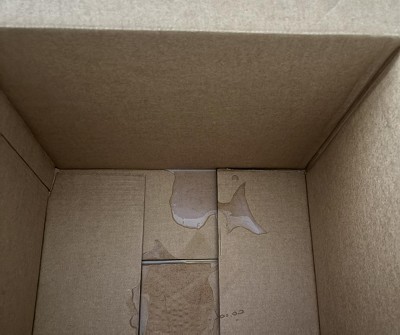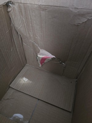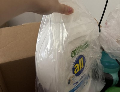 missing item all free clear softener/ overloaded crammed box with holes to heavy