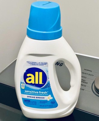 All Sensitive Fresh Spring Breeze HE Liquid Laundry Detergent: Hypoallergenic, Dye & Bleach-Free, Dermatologist Tested, 94 Loads - 118 fl oz