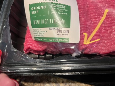 Purchased 93/7 Ground Beef and discovered mysterious fuzz upon opening. Seemed to be mixed into the meat. Was before the exp date so not sure what it was but did NOT eat it!!