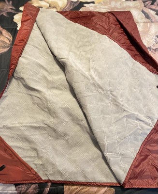 [This review was collected as part of a promotion.] I am absolutely thrilled with this stadium blanket. The maroon color on the waterproof outer side is gorgeous and I love the gray fabric in the other. I’ve used this to sit out with my pups in the rain this week and it is super protective and keeps me warm. I could even use this as a picnic blanket if the rain would stop this week. The carrying case that comes with it is amazing and so nice to have for storage.