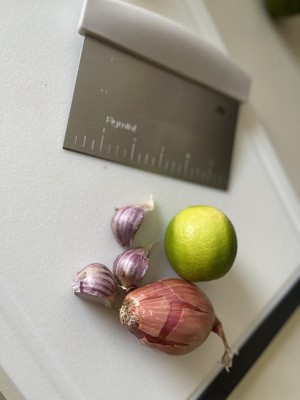 This All-Purpose Scraper and Chopper from Figmint™ is a handy kitchen helper that handles a multitude of tasks. This scraper and chopper features a comfortable nonslip handle, and it's great for cutting dough, sectioning crusts, scraping baking sheets, chopping veggies and more. Plus, the stainless steel blade includes quarter-inch markings for easy measuring. Just toss it in the dishwasher after using for easy cleaning.