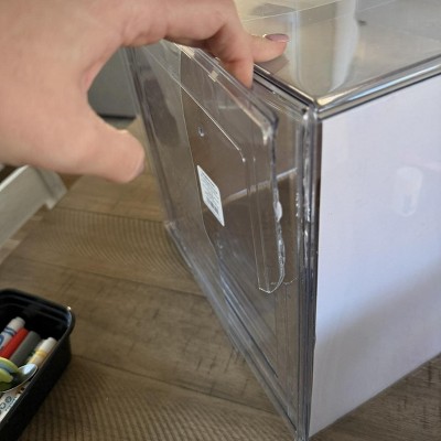 A: The clear construction of this storage unit coordinates with any décor style, enhancing your space.