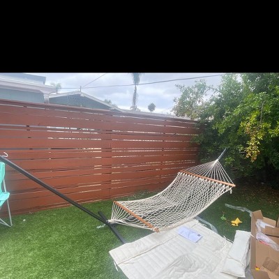 The hammock frame was way larger than the hammock itself. Couldn’t even connect the hammock to it. Don’t waste your money. I’d give zero stars if I could.