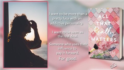 This is an amazing book! From the beautiful cover to the inspiring story inside, All That Really Matters will take your breath away and forever stay in your heart and mind. There are so many emotions in the 400-plus pages. Sadness and tears. Joy and laughter. Despair and fear. Hope and faith. A search for meaning that turns Christian teachings into a fountain of deep belief. I love that Molly, in serving others, finds a contentment that she didn't think was possible. Silas's deep commitment to God and his fellow man is truly inspirational, and he is easily one of the best male characters ever! Deese's focus on foster-care and the need for mentorship of older teens leave a powerful message, and her take on social media certainly offers food for thought. Nicole Deese has crafted an absolutely stunning book, and she is quickly becoming one of my favorite authors. I highly recommend All That Really Matters to all who enjoy contemporary Christian romance. I received a copy of this book from the author. There was no obligation for a positive review. These are my own thoughts.